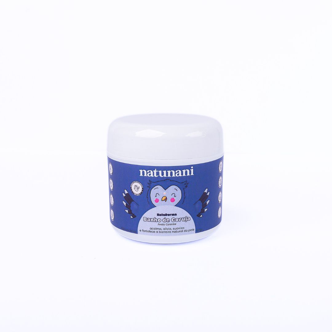O Banho de Coruja foi feito com aveia coloidal 100% pura para alívio das crises de coceira da Dermatite ou em casos que a pele precise de um alívio imediato.