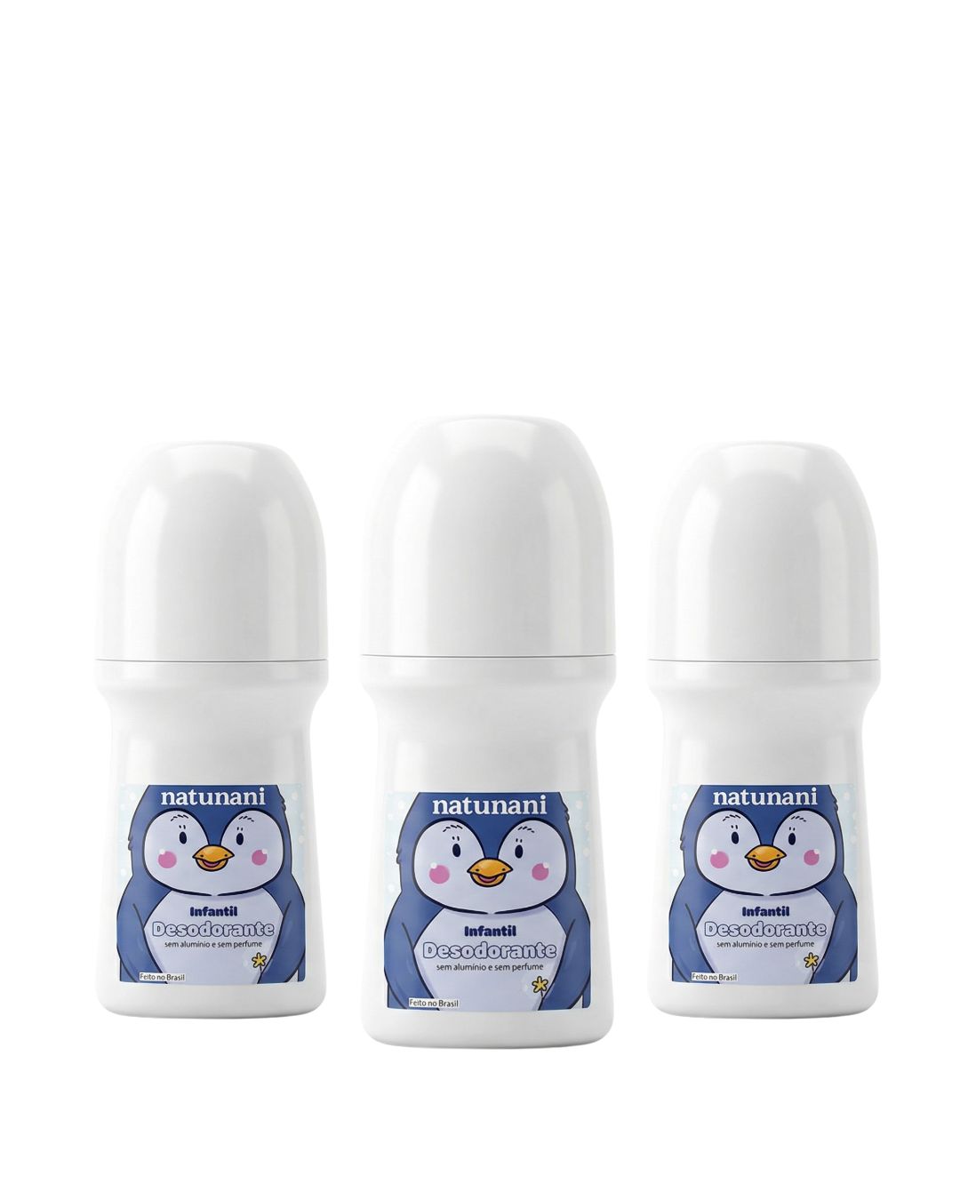 Sem alumínio · Sem parabenos · Sem irgasan · Sem fragrâncias sintéticas · Sem óleos essenciais · Sem corantes · Roll-on de aplicação fácil e higiênica